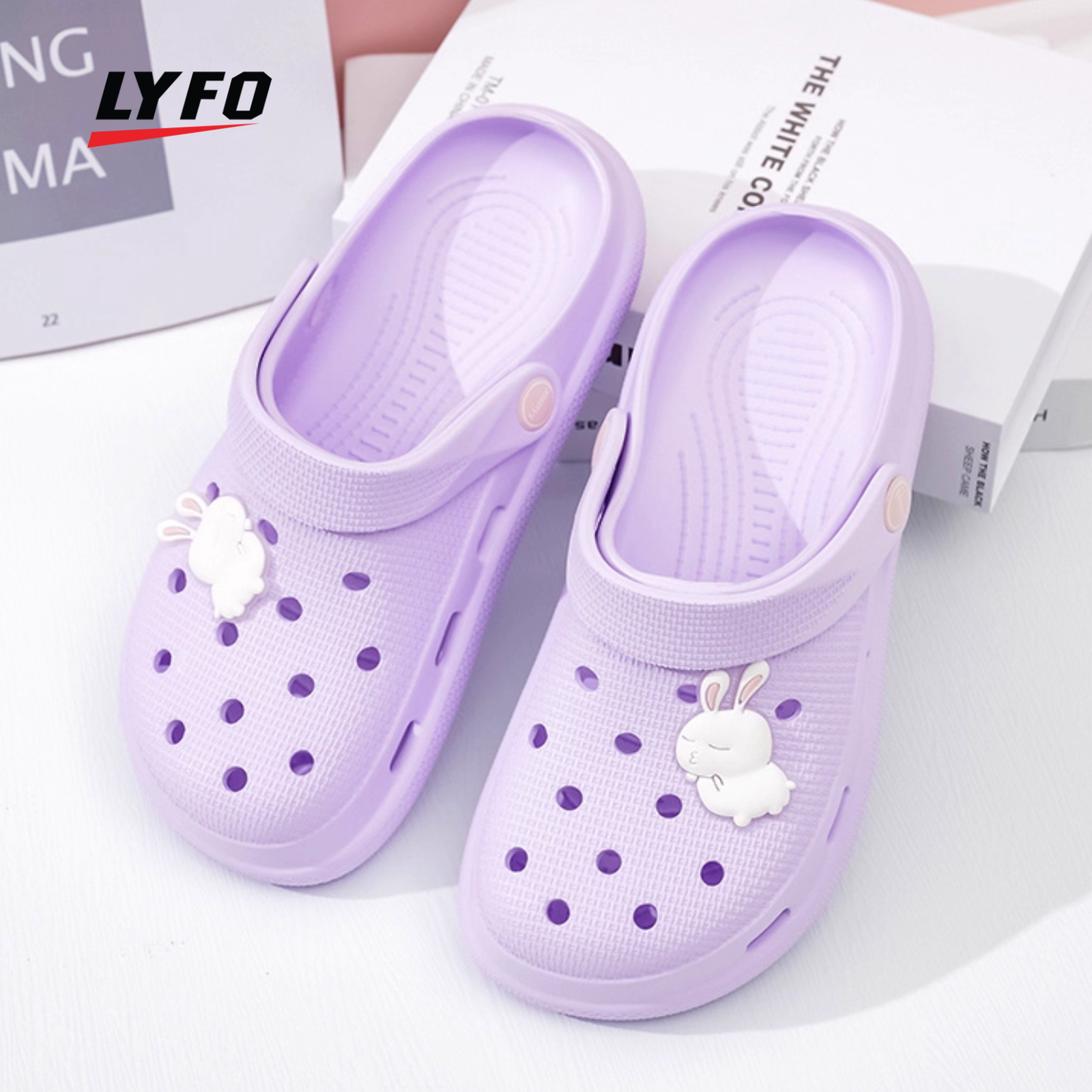Crafted with ultra-lightweight EVA material, these slides feel like walking on clouds while keeping your feet stress-free all day long. The breathable perforated design ensures airflow, making them the perfect choice for both indoors and outdoors. Adorned with a cute bunny charm, these slippers bring a playful yet chic vibe to your everyday wear.